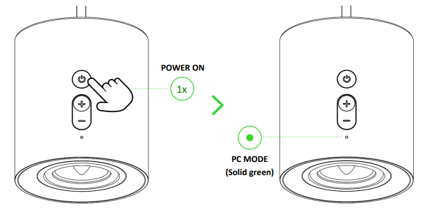 Note: Razer Synapse will not be able to revert to PC mode when the gaming speakers have been set to Bluetooth mode. Double-press the power button to set the gaming speakers to PC mode.