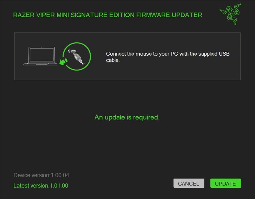 Connect the mouse to your PC and click "UPDATE".